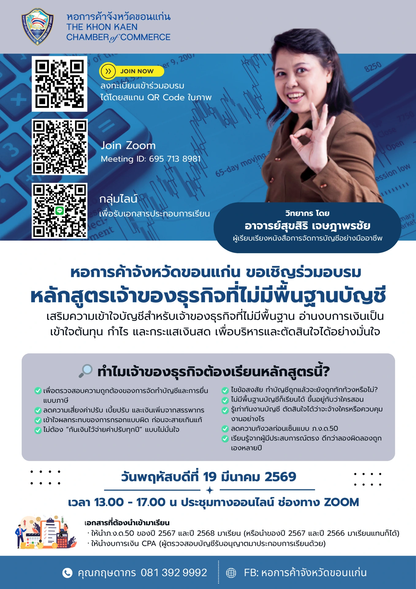 หลักสูตรนี้จึงถูกออกแบบมาเพื่อ เจ้าของกิจการ ผู้บริหาร SME และผู้ที่กำลังเริ่มต้นธุรกิจ ที่ไม่มีพื้นฐานบัญชี ให้สามารถเข้าใจหลักการบัญชีที่จำเป็นต่อการบริหารธุรกิจได้อย่างง่ายและนำไปใช้ได้จริง